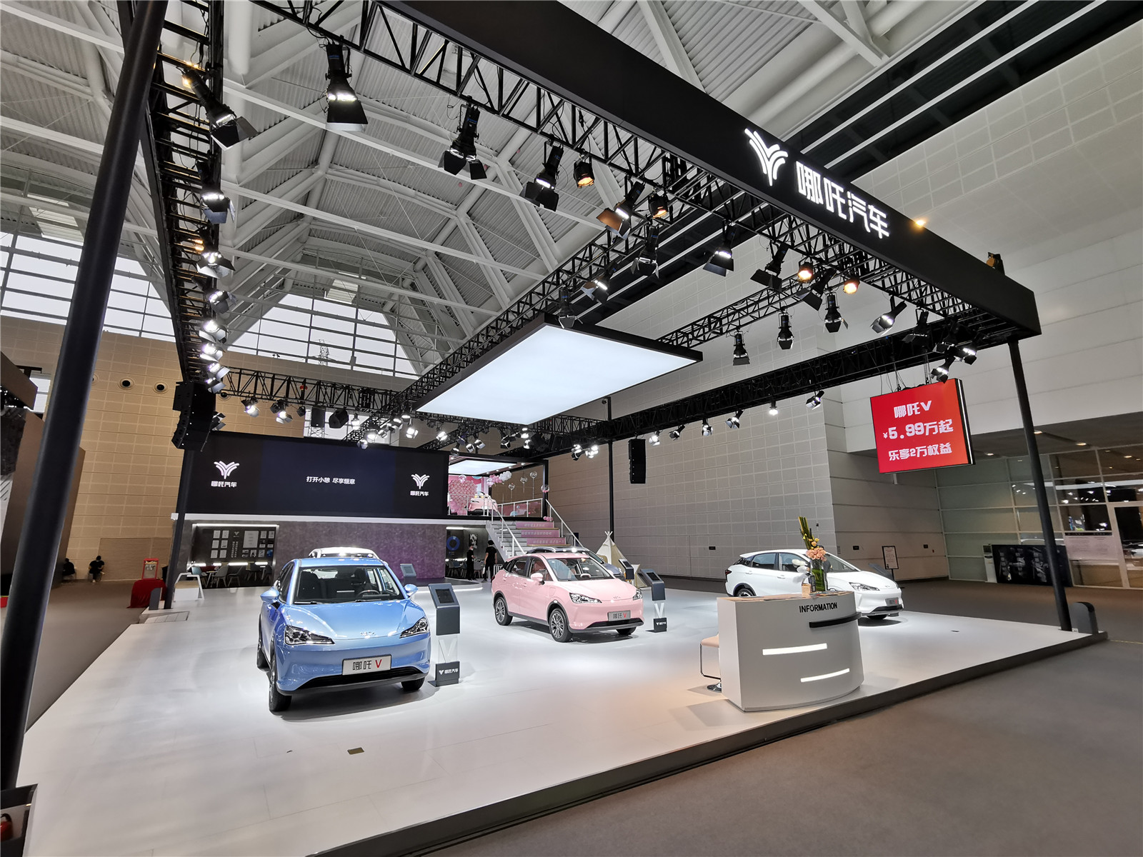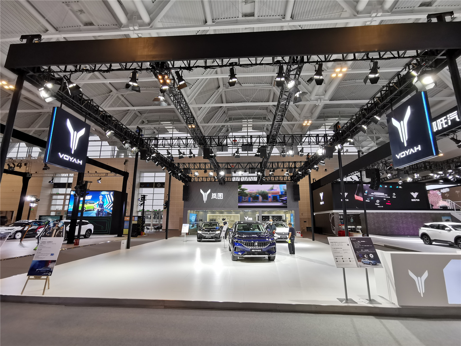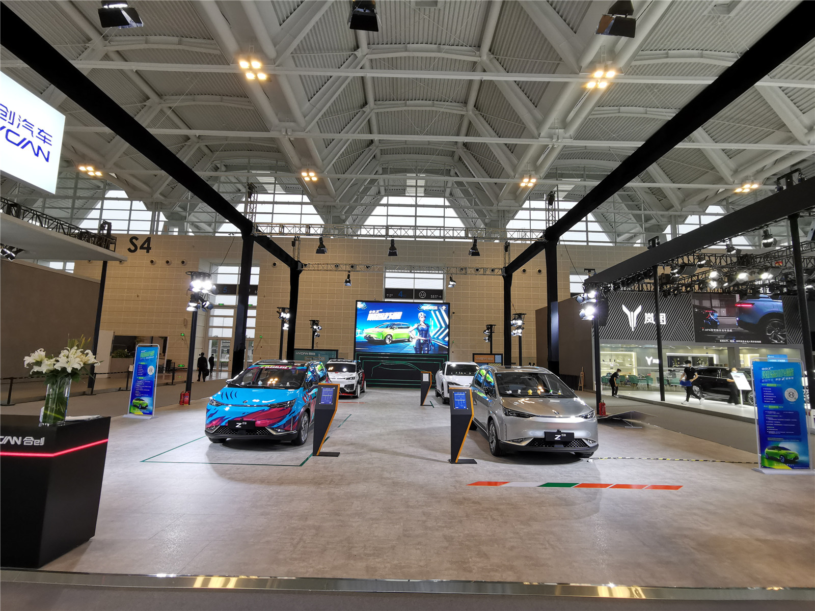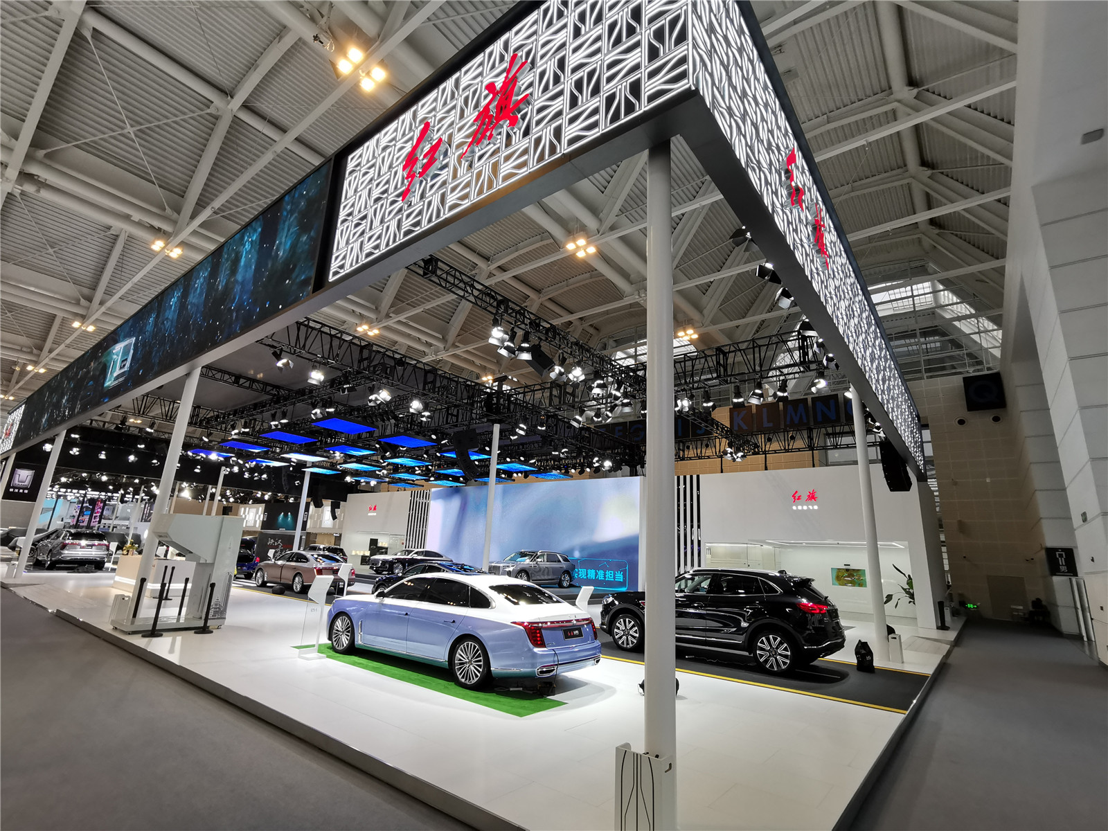 本馆展台有哪吒汽车、岚图、合创汽车、奥迪、红旗、坦克、零跑汽车、R汽车