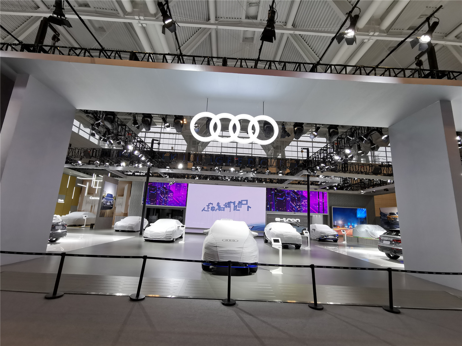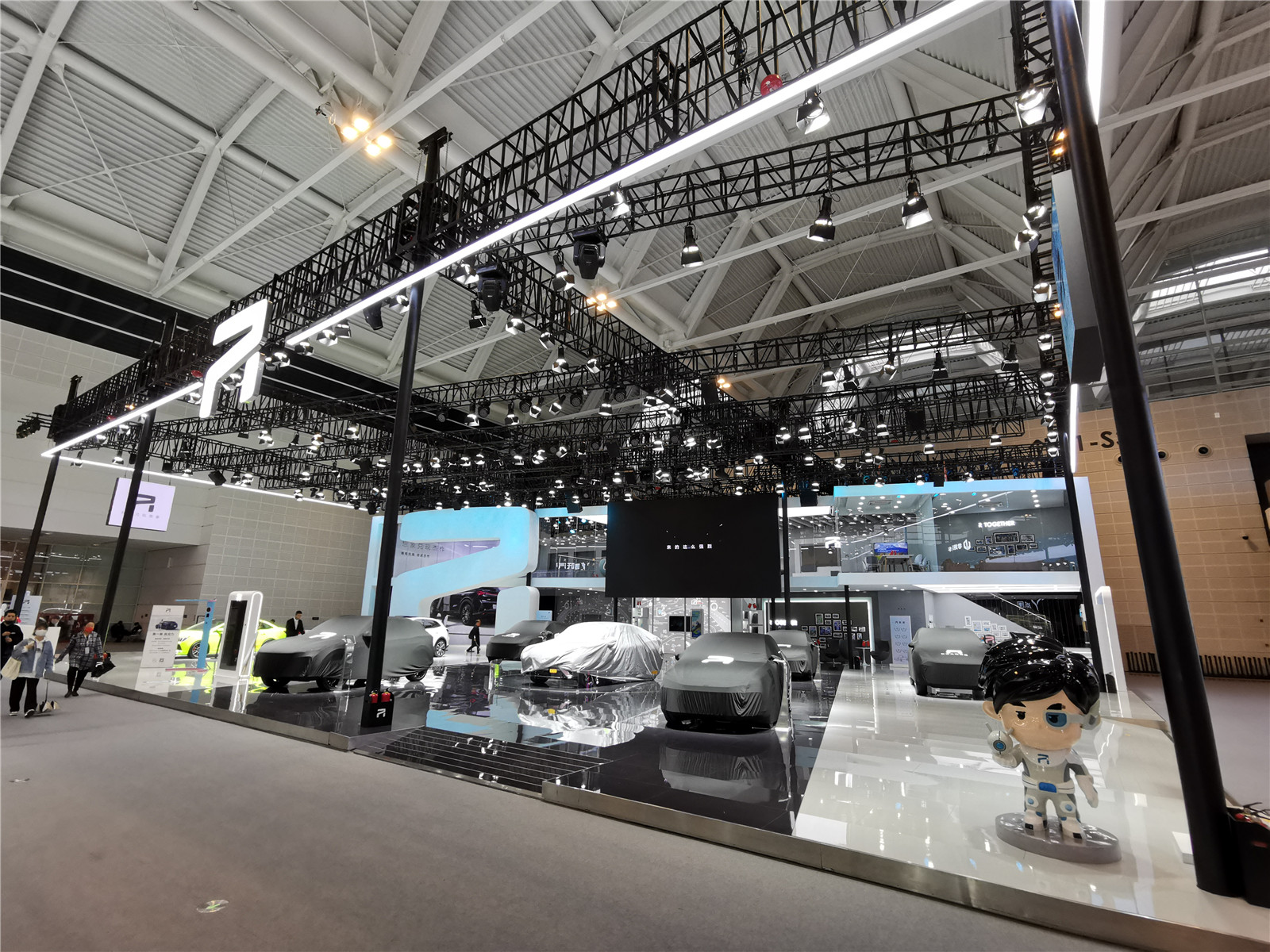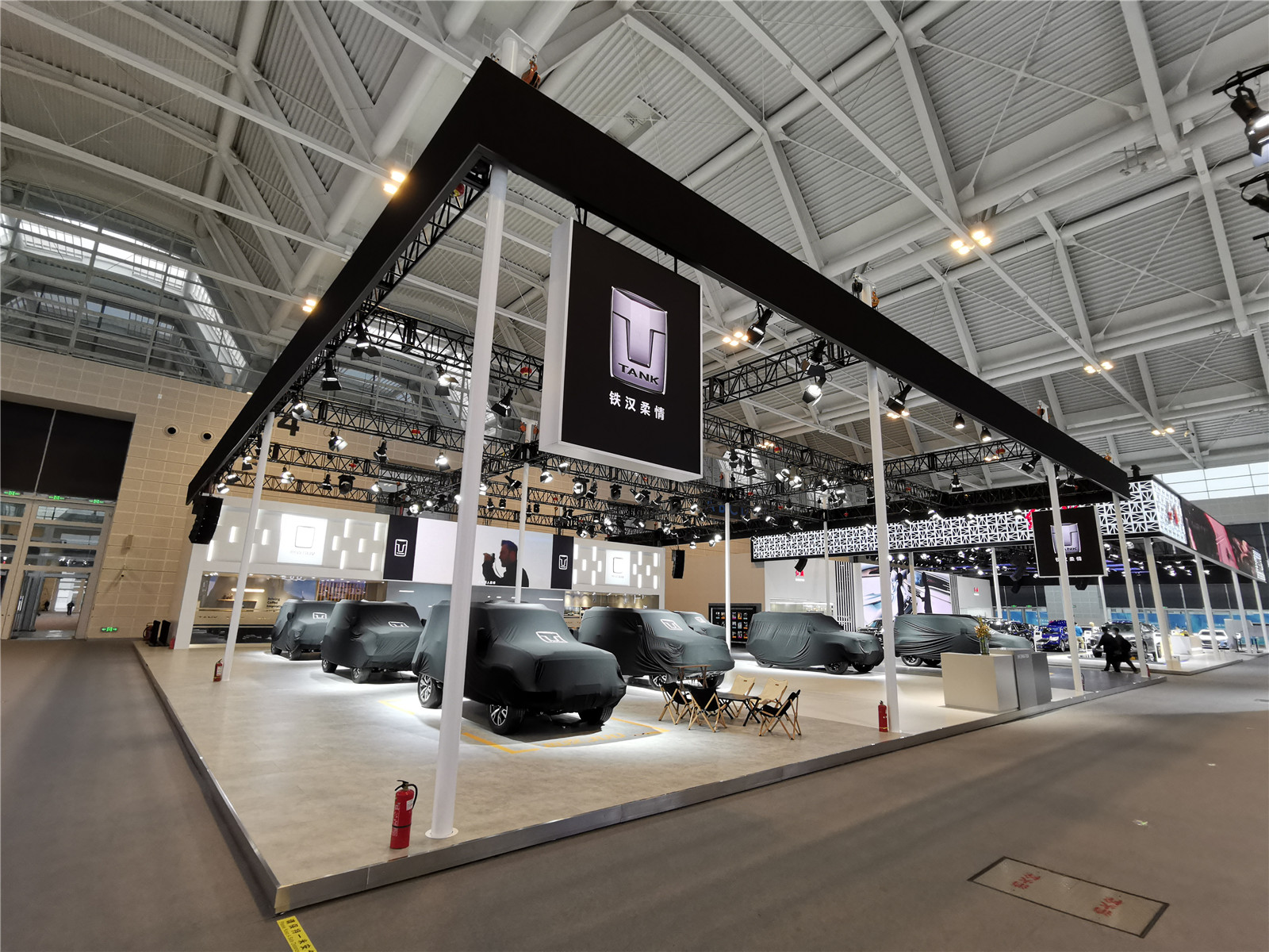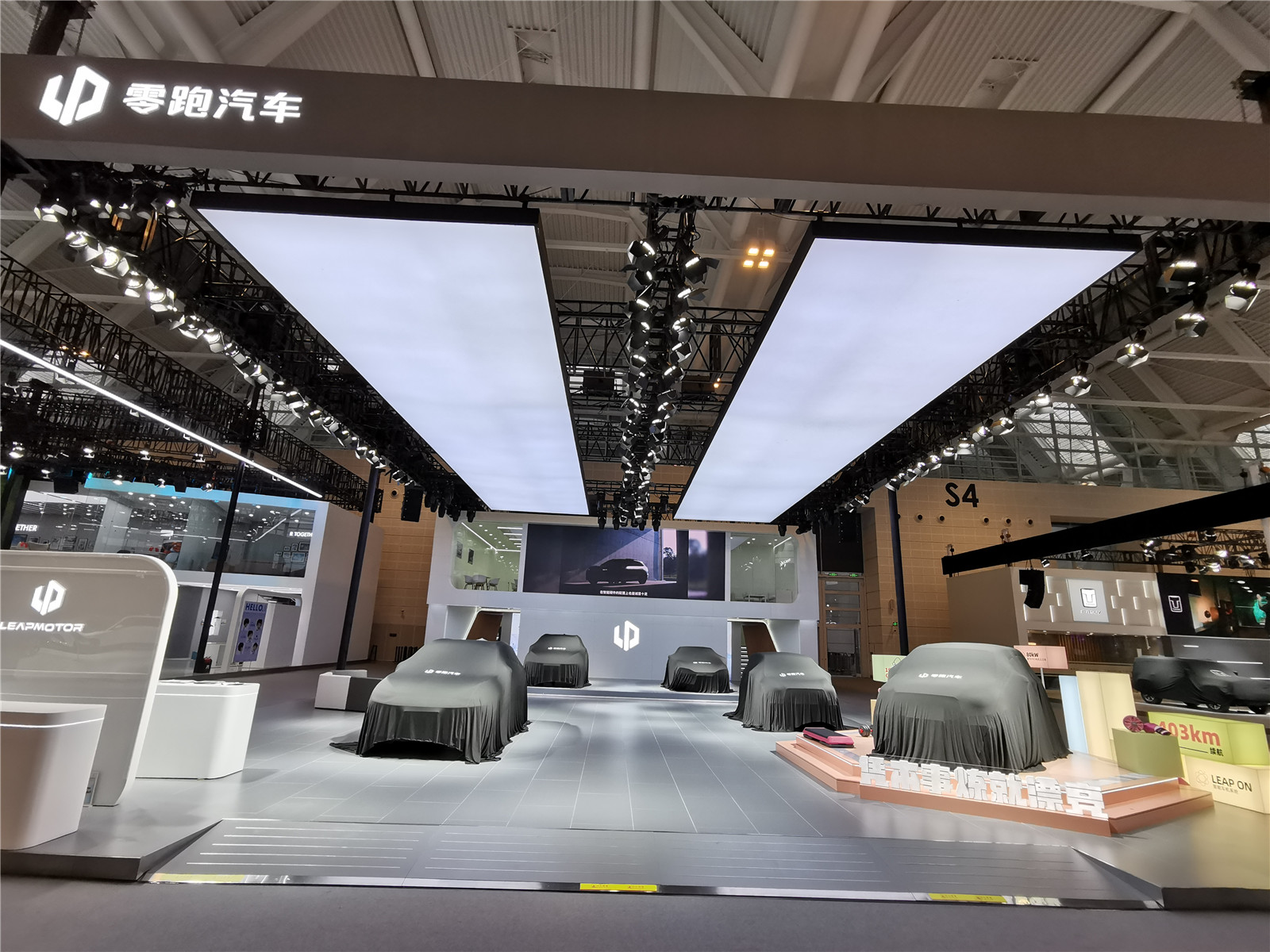 本馆展台有哪吒汽车、岚图、合创汽车、奥迪、红旗、坦克、零跑汽车、R汽车